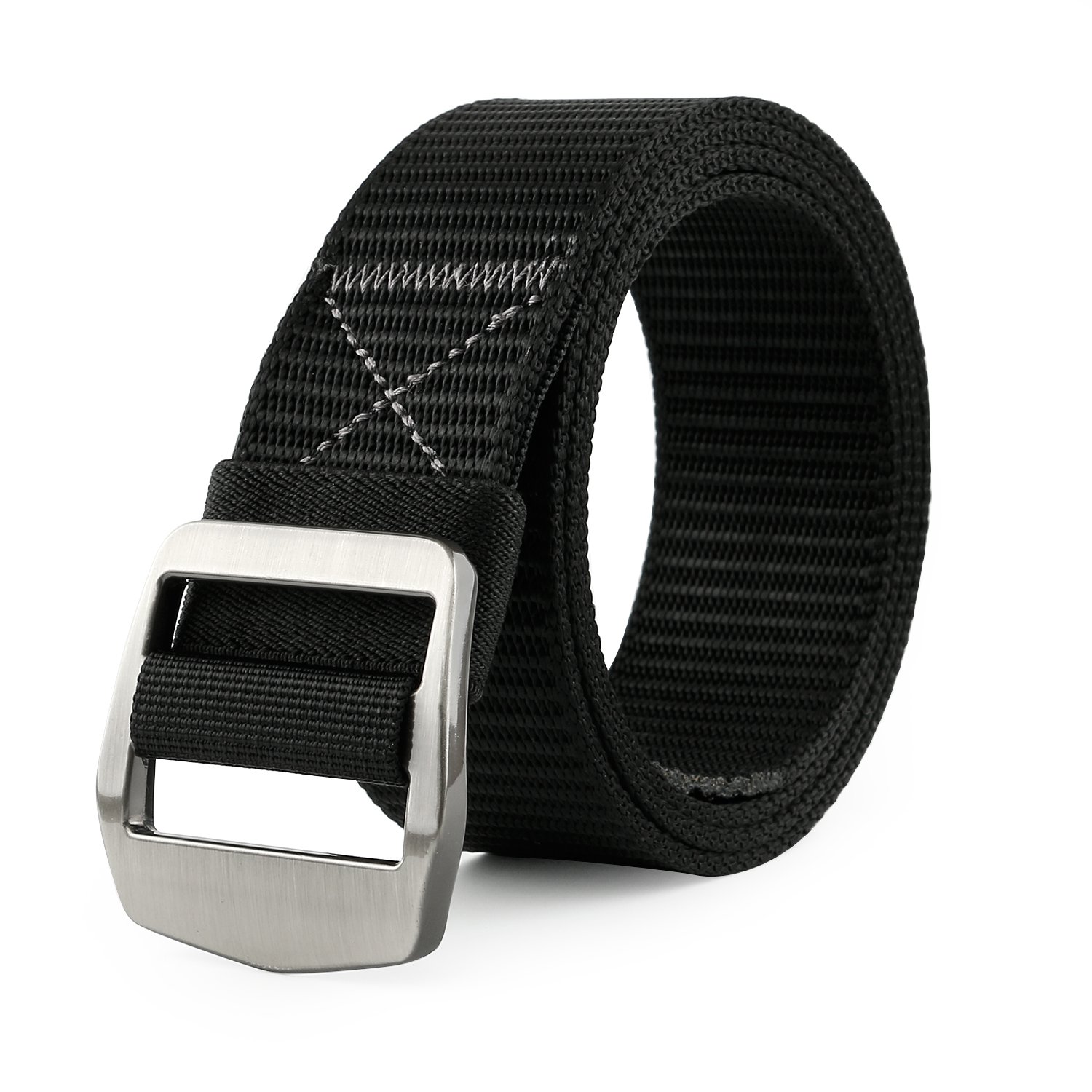 Durable Casual Web Belt (Max 42") - Men's Fabric Strap with Military Plaque Buckle for Outdoor Wear