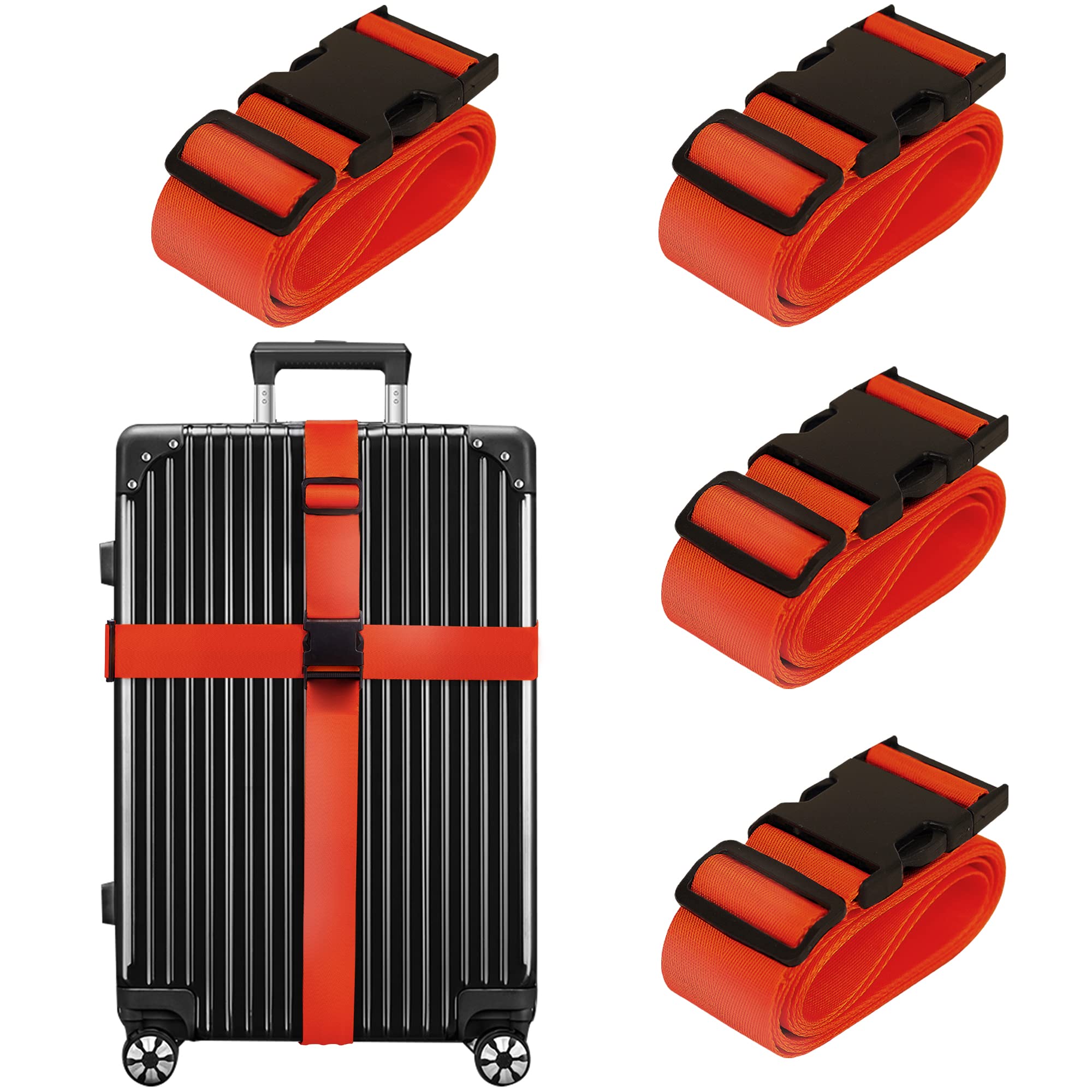 TSA Approved Luggage Straps for Suitcases - Security Travel Belts - 4 Pack (Orange)