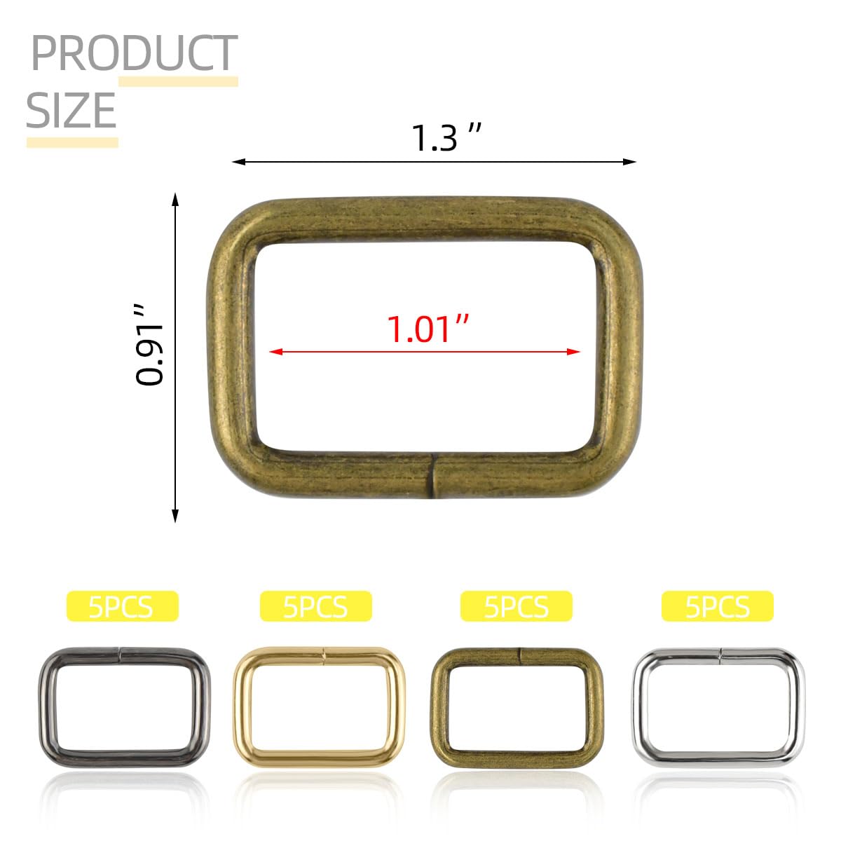 Heavy-Duty Metal Hardware Set: 1" Rectangle and Square Rings for Belts, Harnesses, and Webbing (Multi-Color)